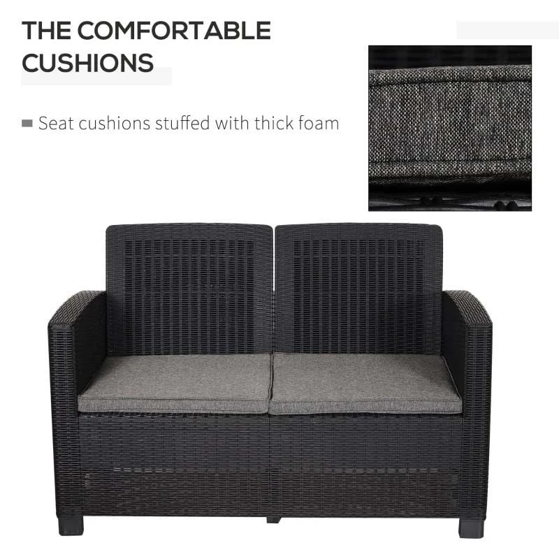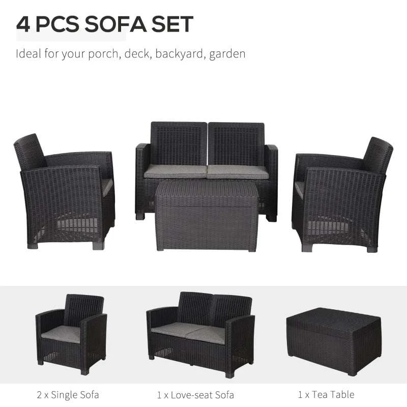 Outsunny 4-Seater Rattan Garden Furniture Set – Black – 84B-372BK