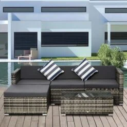 Outsunny 4-Seater Rattan Garden Furniture Set – Black/Grey – 860-017V70