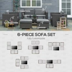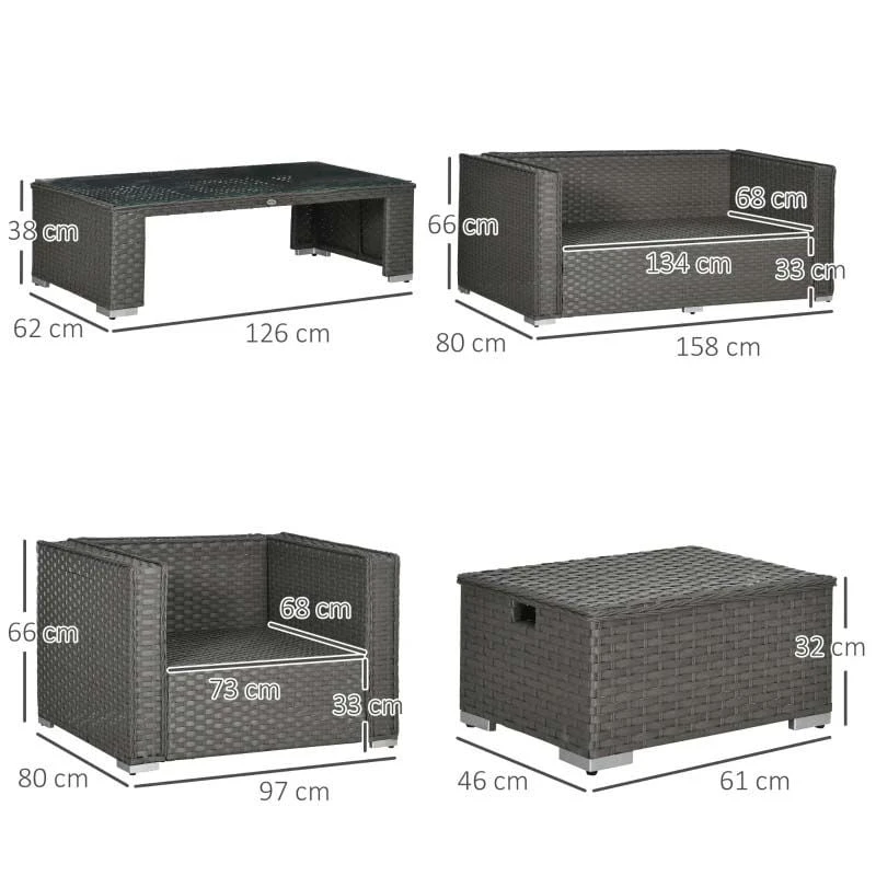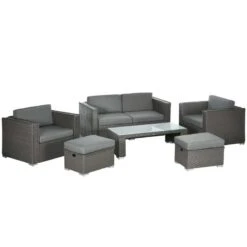 Outsunny 4-Seater Rattan Garden Furniture Set – Grey – 841-147