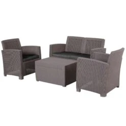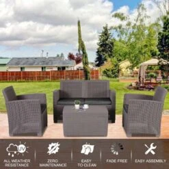 Check out this Outsunny 4-piece rattan effect garden furniture set with 2 armchairs, love seat and coffee table that we can be sure will compliment your outdoor living space perfectly. The design mean you can tuck the furniture set into a nice corner of your garden making the most out of your space. Contrcuted from PP plastic, this garden furniture set is durable, strong and will last for years to come. The extra wide seats, high back and arm rests will keep you and a few friends supported and completely comfortable for hours on end. The thick cushions, each have a zip making them easy to remove to wash and maintain yourself at home. The coffee table is light weight so is easily manoeuvred to your preferred position, what more, there is also ample of space in the underneath storage box for garden toys and blankets, which can be secured away with the table top lid. If you are looking for a relaxing and classic design rattan effect garden furniture set, this is the one for you.