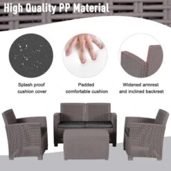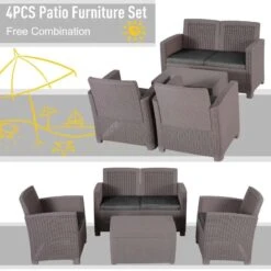Outsunny 4-Seater Rattan Garden Furniture Set – Grey – 84B-372GY