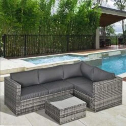 Outsunny 4-Seater Rattan Garden Furniture Set – Grey – 860-068GY
