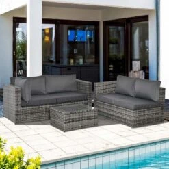 Outsunny 4-Seater Rattan Garden Furniture Set – Grey – 860-068GY
