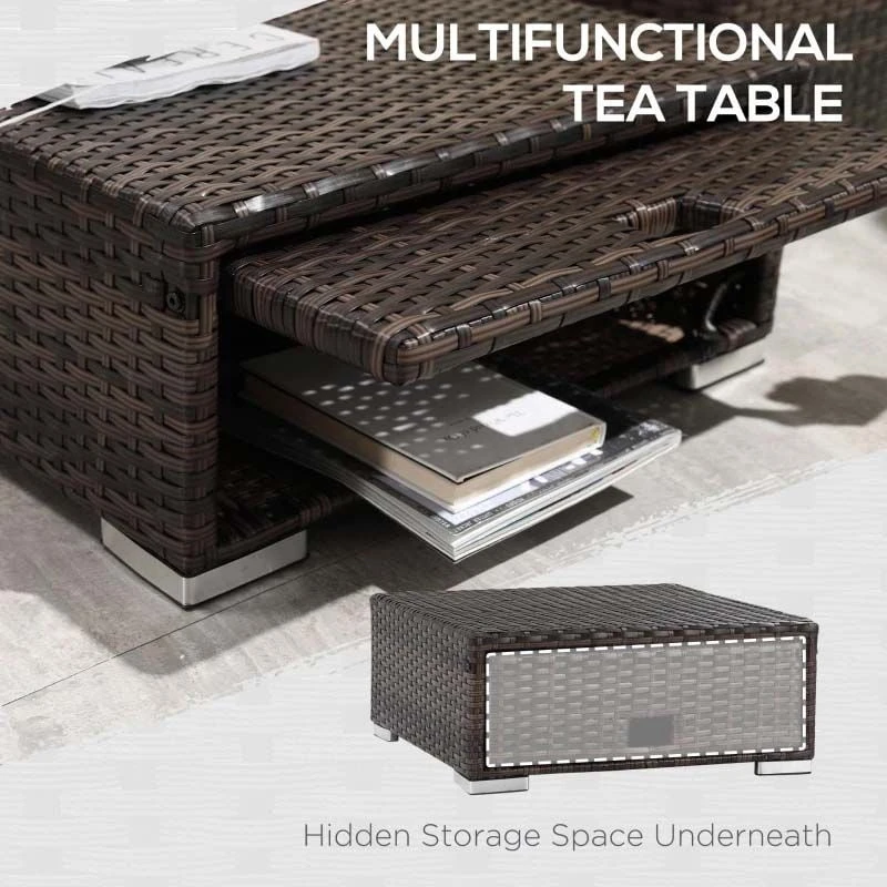 Outsunny 4-Seater Rattan Garden Furniture Set With Storage – Brown – 860-091V70BN