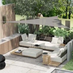 Enhance your outdoor living with the Outsunny Sail Shade. Made from 185gsm polyethylene, this tough and durable shade provides protection from direct sunlight and harmful UV rays, allowing you to relax safely underneath. Its triangle shape makes it easy to attach to odd-shaped spots using stainless steel rings and ropes. Whether it’s your garden, driveway, or allotment, this sail shade is perfect for any outdoor space. The thick material shields you from the sun while keeping you cool. Double stitched corners with stainless steel rings ensure secure attachment. A carry bag is included for convenient storage and transport. Assembly is required.