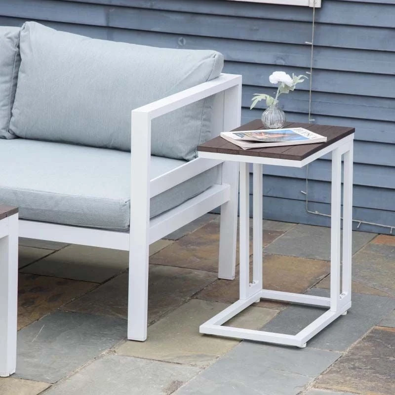 Check out this Outsunny 5pcs garden furniture set, complete with L shaped sofa, coffee table, c-shape side table and foot stool perfect for you and your family and friends to enjoy each-others company in the comfort of your own garden. The included cushions on the seat and back rests will keep you supported and comfortable for hours on end and the zipper covers are easily removed to be washed and maintained. The coffee and side table is ideal for resting multiple drinks and snack bowls or to even eat dinner around, they are also lightweight so can be manoeuvred to your preferred position. Constructed from a strong metal frame, this garden set is durable, weather resistant and will last for years to come. The slatted seat design will drain water, extending this garden furniture set lifespan. We can be sure the modern design is ideal for any outdoor living space and will compliment your garden perfectly.