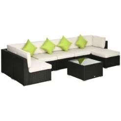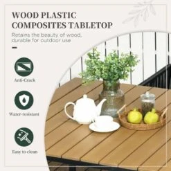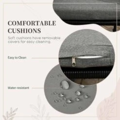 This Outsunny five-piece set offers a warm environment that is perfect for gardens and other outside spaces. The round PE wicker is wrapped around a sturdy frame made of rust-resistant aluminium for added durability and weather resistance. The wood grain plastic table top offers a posh appearance and is incredibly simple to clean. When not in use, the ottomans and chairs nest precisely under the table for convenient storage that maximises available space.