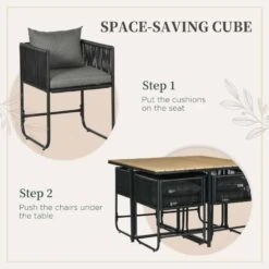 Outsunny 5 Piece Patio PE Rattan Wicker Dining Table & Chairs Set – Black – 861-061V00ND