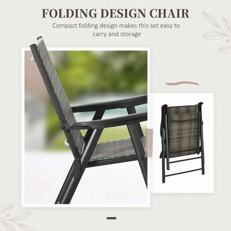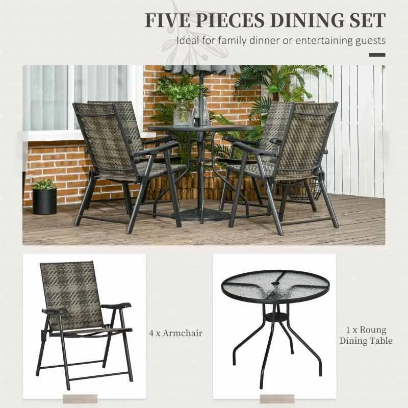 Outsunny 5 Piece PE Rattan Dining Set Round Glass Top with Folding Armchairs – Mixed Grey – 861-060V00GG