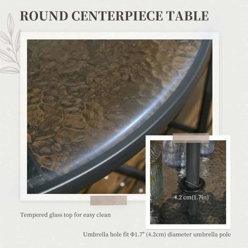 Enjoy the great outdoors in style and comfort with this classic outdoor piece that comes with a contemporary rattan twist. The plastic wicker seats are very comfortable, and the powder-coated steel frames provide a robust foundation. The matching round table has a 42mm hole in the centre for parasol umbrellas.