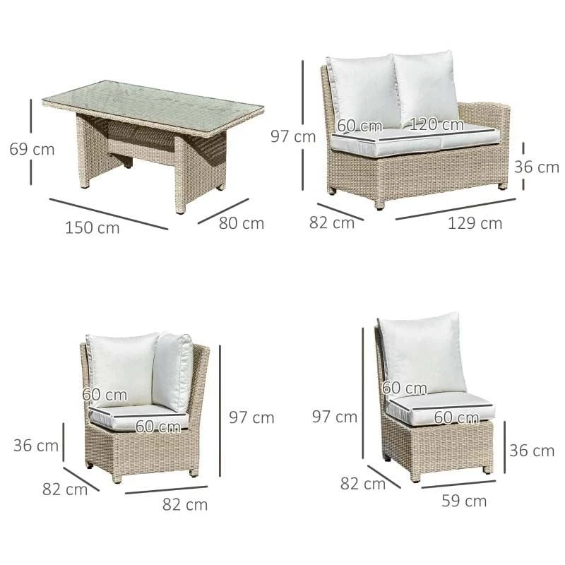 Outsunny 5 Piece Rattan Garden Furniture Set – Cream / Brown – 860-167