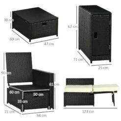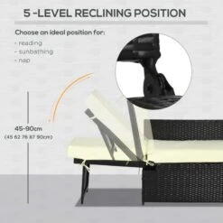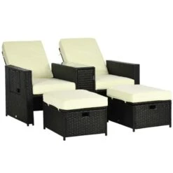 Outsunny 5 Piece Rattan Reclining Sofa Set – Black – 862-067V71BK