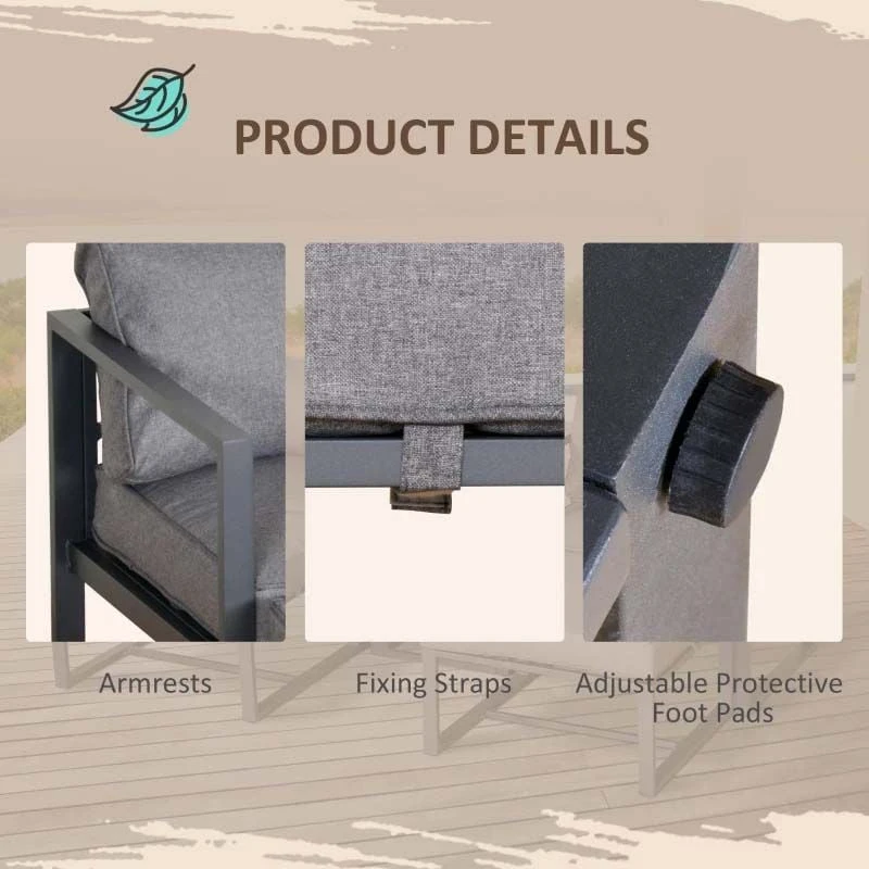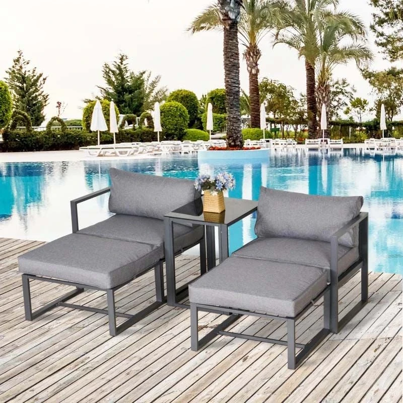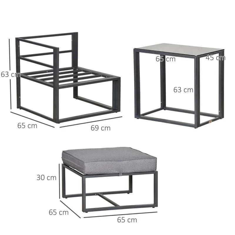 Check out this stunning 5-piece Outsunny garden sun lounger set that comes with 2 armchairs, 2 foot stools and side table that we can be sure with complement your outdoor living space perfectly. Constructed from a power coated metal frame, this set is strong, durable and will last for years to come, even in the weather elements. The added cushions are made from high quality material, they each have a zip, so to be removed to be washed and maintained at home. The deep seats and high arm rests will keep you completely supported and comfortable for hours on end. Sit back and relax with your feet on the foot stools or use as additional seating to entertain a few others. Complete with a handy side table, ideal for resting your drinks and snack bowls and is lightweight so can be easily manoeuvred to your preferred position, even with the elegant glass top finish. If you are looking for a modern and stylish design garden lounger set, this is the one for you.