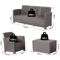 - Maximum weight chair: 160kg, sofa: 330kg, table: 70kg