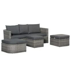Outsunny 5-Seater Rattan Garden Furniture Set – Grey – 860-180