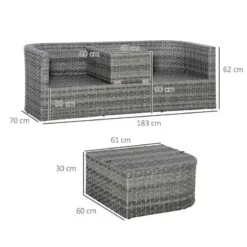 Check out this Outsunny 3-piece rattan garden sofa set with a 3-seater sofa and 2 foot stools that we can be sure will compliment your outdoor living space perfectly. The modern designs mean you can tuck the sofa into a nice corner of your garden making the most out of your space. Constructed from a metal frame and covered in a PE rattan wicker, this garden sofa set is durable, strong and will last for years to come. The extra wide seats, high back and arm rests will keep you and a few friends supported and completely comfortable for hours on end. The thick cushions, each have a zip making them easy to remove to wash and maintain yourself at home. Flip down the central middle table and slot the two foot stools all together to make a large double sun lounger. When not in use flip the central table back up and place the foot stools neatly either side the 3-seater sofa to compactly store away in the winter months. If you are looking for a relaxing and modern rattan garden sofa set, this is the one for you.
