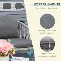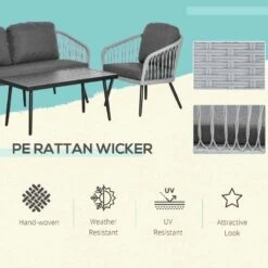 Check out this Outsunny 4-piece rattan garden furniture set with 2 armchairs, love seat and coffee table that we can be sure will compliment your outdoor living space perfectly. The modern designs mean you can tuck the furniture set into a nice corner of your garden making the most out of your space. Constructed from a metal frame and covered in a PE rattan wicker, this garden furniture set is durable, strong and will last for years to come. The extra wide seats, high back and arm rests will keep you and a few friends supported and completely comfortable for hours on end. The thick cushions, each have a zip making them easy to remove to wash and maintain yourself at home. The coffee table is light weight so is easily manoeuvred to your preferred position and can be cleaned with a damp cloth. If you are looking for a relaxing and modern rattan garden furniture set with a gorgeous weave design, this is the one for you.