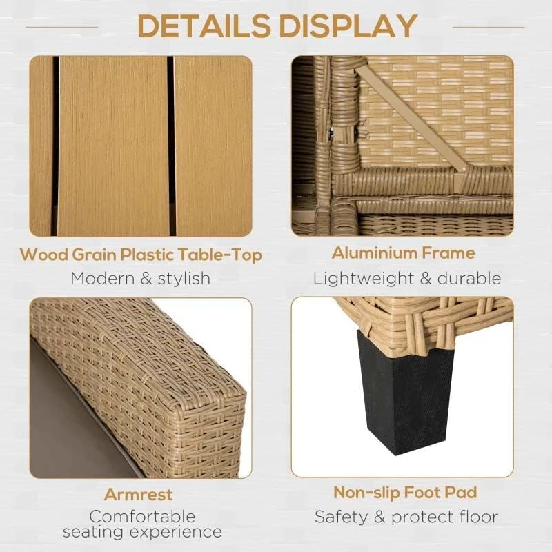 - Material: Aluminium, PE Rattan, Polyester, Plastic