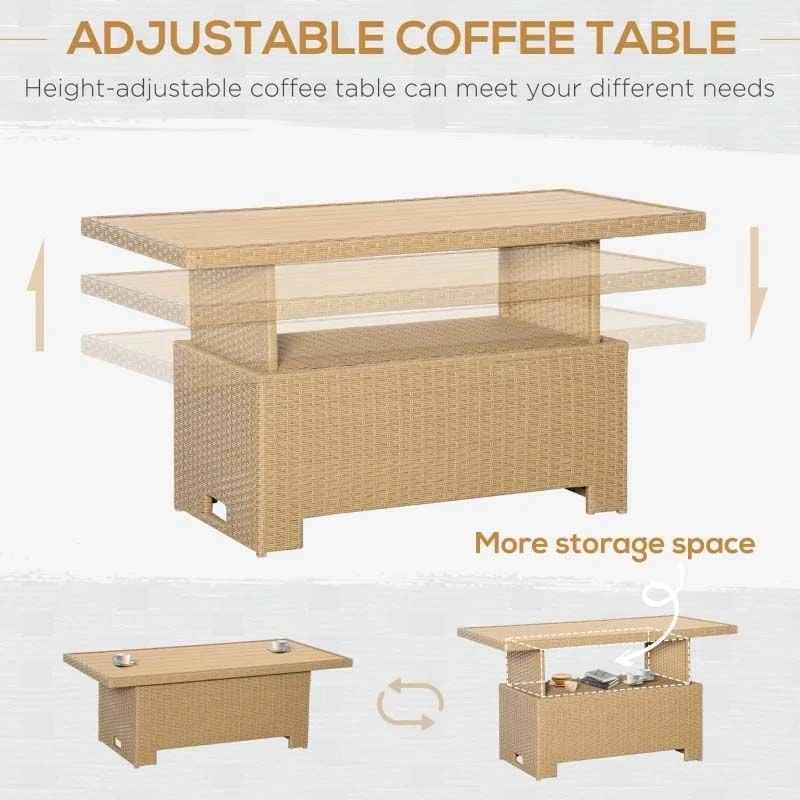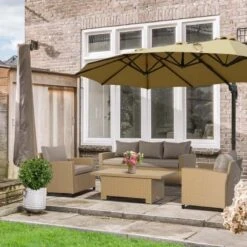 Outsunny 5-Seater Rattan Garden Furniture Set – Khaki – 860-209V70