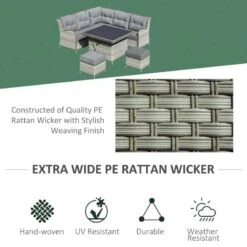Outsunny 5-Seater Rattan Garden Furniture Set With Cushions – Grey – 860-184
