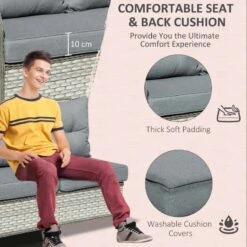 - Zippered seat cushions filled with thick paddings for optimal comfort and relaxation