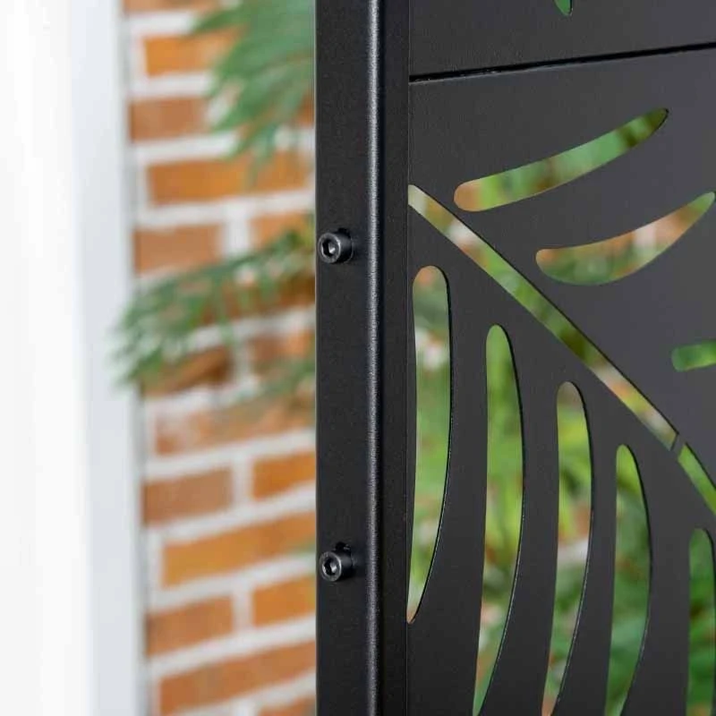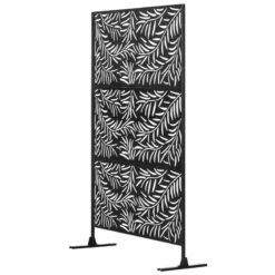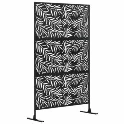 This Outsunny freestanding garden screen creates your private paradise instantly. Cut-out leaf design allows light to gently seep through creating a beautiful ambiance. This garden divider screen stands balanced and steady on two wide feet. Recommended to add weights too for safety. Four ground stakes are included. This steel garden partition screen is tough, with a painted coating for extra protection.