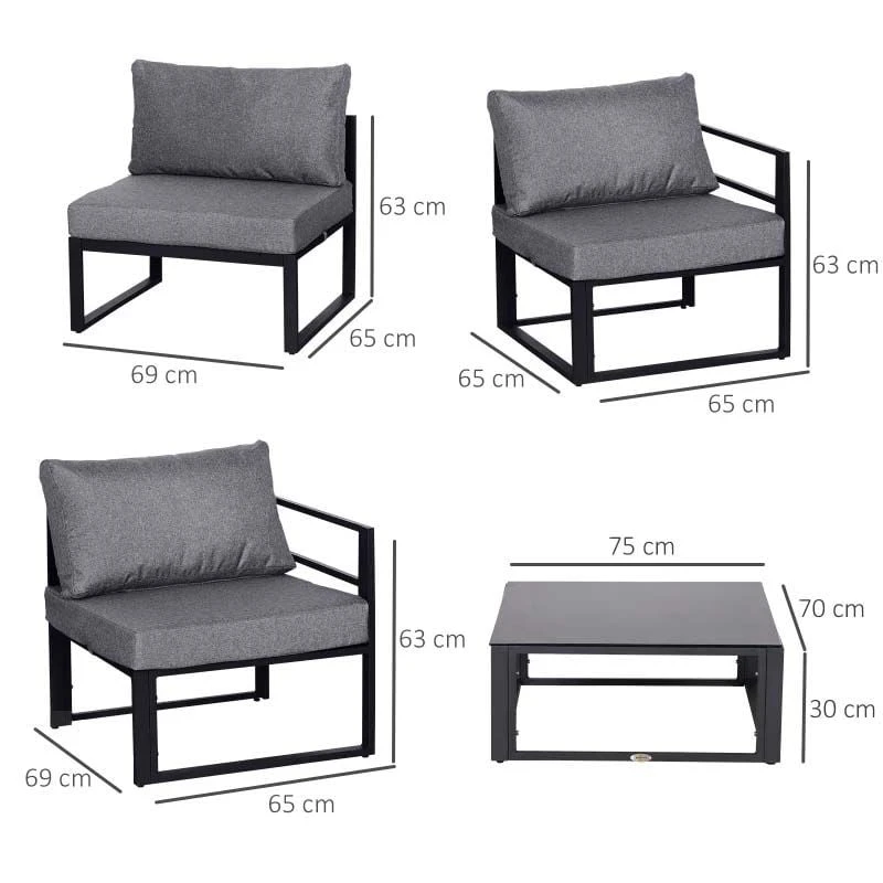 The Outsunny 6 Piece Garden Furniture Set with plush padded cushions on the seats ensure all day comfort. The covers can be taken off and washed to keep them fresh all-year round. With a tempered glass top, the coffee table adds a sleek finishing touch to the set and is easy to clean and look after.