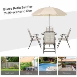 Outsunny 6 Piece Garden Patio Table & Chairs Bistro Set – Black & Cream – 01-0708