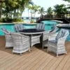 Outsunny 6 Piece Patio Rattan Wicker Table & Chairs Set with Storage Layer – Mixed Grey – 861-052V70