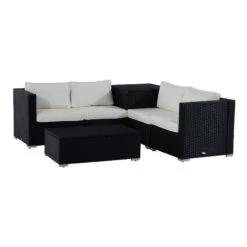 Outsunny 6 Piece Rattan Garden Furniture Set – Black / Beige – 860-006