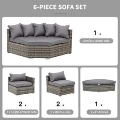 Outsunny 6 Piece Rattan Garden Furniture Set – Grey – 860-132