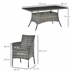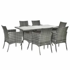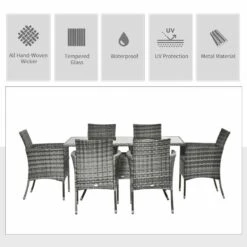 Outsunny 6 Seater Patio Rattan Dining Table & Chairs Set – Grey – 861-071V70GY