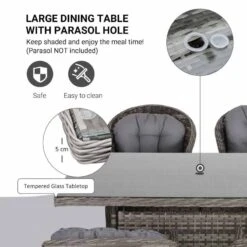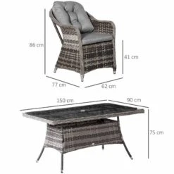 Outsunny 6-Seater Patio Rattan Wicker Dining Table & Armchairs Set – 861-037V70