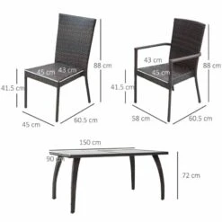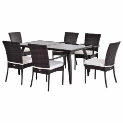 Turn your patio or deck into a causal dining area with this 7 pieces garden dining furniture from Outsunny. Fashioned from a reinforced galvanized steel frame and a beautiful wicker material, the mildew resistant wicker and detachable cushions allow for easy cleaning and maintenance. This beautifully designed wicker dining furniture set will bring instant contemporary charm and elegance to your dining area.