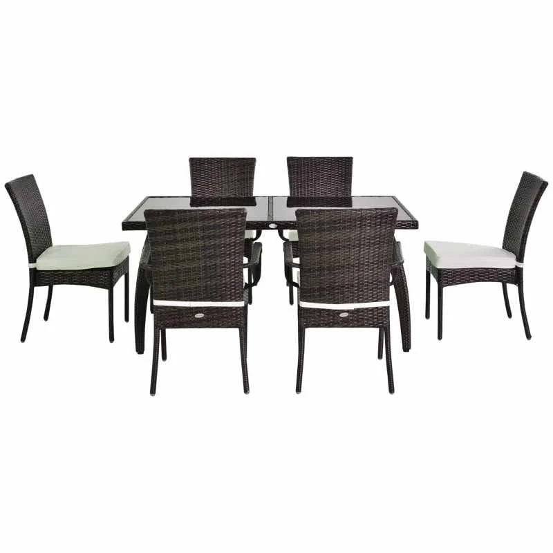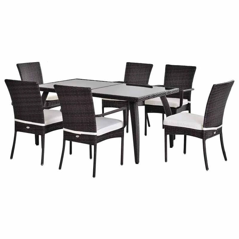 Outsunny 6 Seater Rattan Dining Set – Brown & Cream White – 861-026