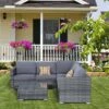 - 4 pieces of rattan sofa patio set induces 2 double corner sofas, 1 double middle sofa, and 1coffee table