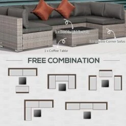 Outsunny 6-Seater Rattan Garden Furniture Set – Grey – 860-221V70