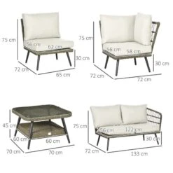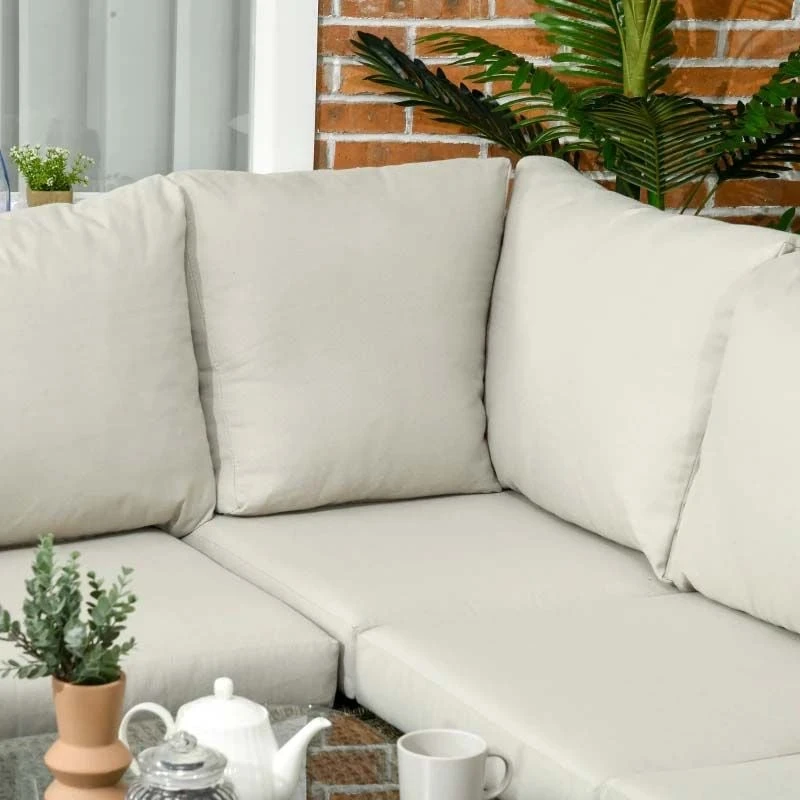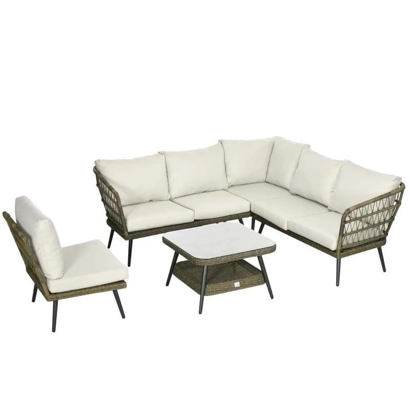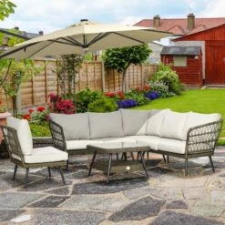Check out this Outsunny 5-peice rattan wicker garden sofa set with an armless chair, corner chair, right hand corner seat and coffee table that we can be sure will compliment your outdoor living space perfectly. The modern design mean you can tuck the sofa into a nice corner of your garden making the most out of your space. Constructed from a metal frame and covered in a PE rattan wicker, this garden sofa set is durable, strong and will last for years to come. The extra wide seats, high back and arm rests will keep you and a few friends supported and completely comfortable for hours on end. The thick cushion, each have a zip making them easy to remove to wash and maintain yourself at home. The coffee table is light weight so can be manoeuvred to your preferred position, even with the elegant glass top finish, it is also complete with a ridged shelf underneath. The stylish woven rattan wicker design is elegant and will look gorgeous in your garden.