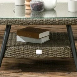 - Glass-top on table for a sleek and safe resting place. Two-tier table for double the holding room