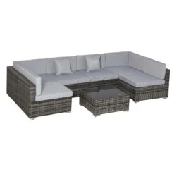 Outsunny 6-Seater Rattan Garden Furniture Set – Grey/Beige – 860-027GY