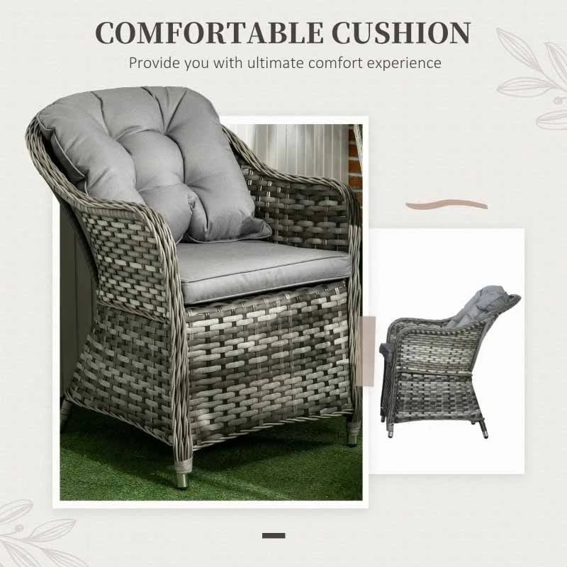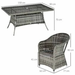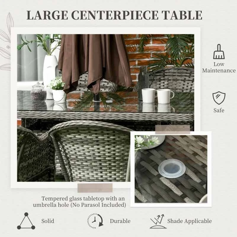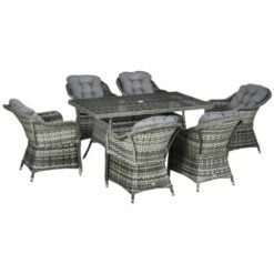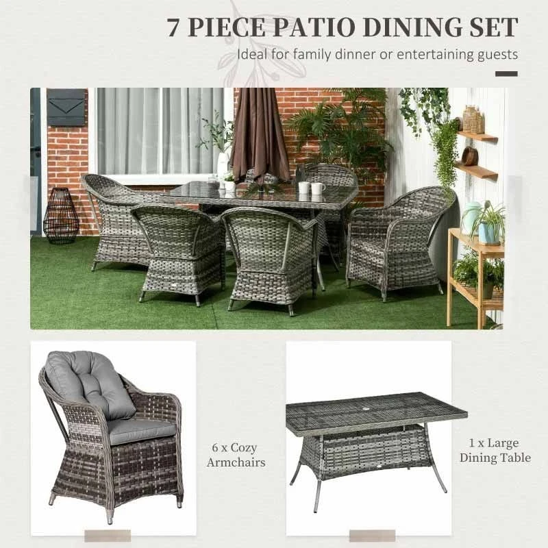 Outsunny 7 Piece Patio PE Rattan Wicker Dining Table & Chairs Set with Cushions – Grey – 861-037V71GY