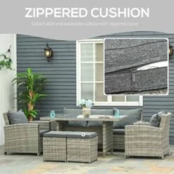 Outsunny 7-Seater Rattan Dining Set With Cushions – Grey – 860-069