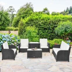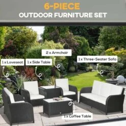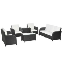 Outsunny 7-Seater Rattan Garden Furniture Set – Black/Beige – 860-251V70BK