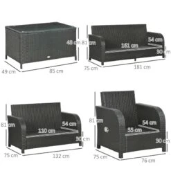 - Weight Capacity: Three-Seater Sofa: 450 kg, Loveseat Sofa: 300 kg, Armchair: 150 kg, Table: 70 kg