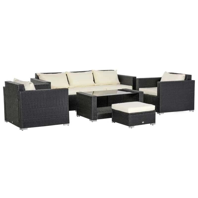 Outsunny 7-Seater Rattan Garden Furniture Set – Grey/Cream – 841-159