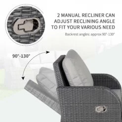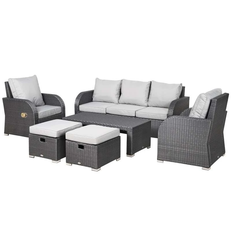 Outsunny 7-Seater Rattan Garden Furniture Set With Recliners – Grey – 860-105V70