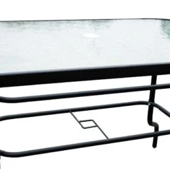- 1 rectangular table with tempered glass top, 6 folding chairs and 1 round umbrella