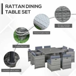 Outsunny 8-Seater Patio Rattan Wicker Dining Table & Chair Set – Mixed Grey – 861-042