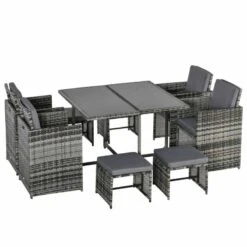 Outsunny 8-Seater Patio Rattan Wicker Dining Table & Chair Set – Mixed Grey – 841-108GY