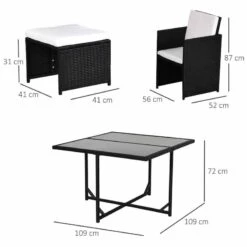 This rattan garden set is suitable for gardens, patios, conservatories, balconies and similar areas. It is stylish and durable and will instantly transform your outdooor space. The frames, made from metal ensure a tough structure – with the PE wicker rattan around it giving extra protection and durability. All seats come with a padded cushion for comfort. The table’s top is made from beautiful tempered glass that will leave you enjoying your outdoor garden events.